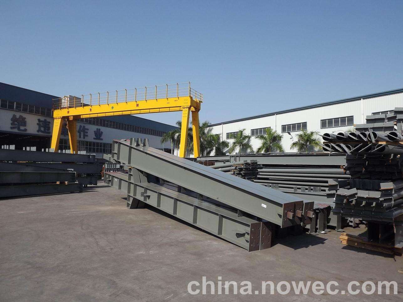 条状单元一般沿长跨方向分割,其宽度约为1~3个网格,其长度为l2或l2/2(l2为短跨跨距)。块状单元一般沿巴彦淖尔网架平面纵横向分割成矩形或正方形单元。每个单元的重量以现有起重机能胜任为准。条(块)与条(块)之间可以直接拼装,也可空一网格在高空拼装。由于条(块)状单元是在地面拼装,因而高空作业量较高空散装法大为减少,拼装支架也减少很多,又能充分利用现有起重设备,故较经济。这种安装方法适用于分割后网架的钢度和受力状况改变较小的各类中小型网架,如两向正交正放四角锥、正放抽空四角锥等网架。